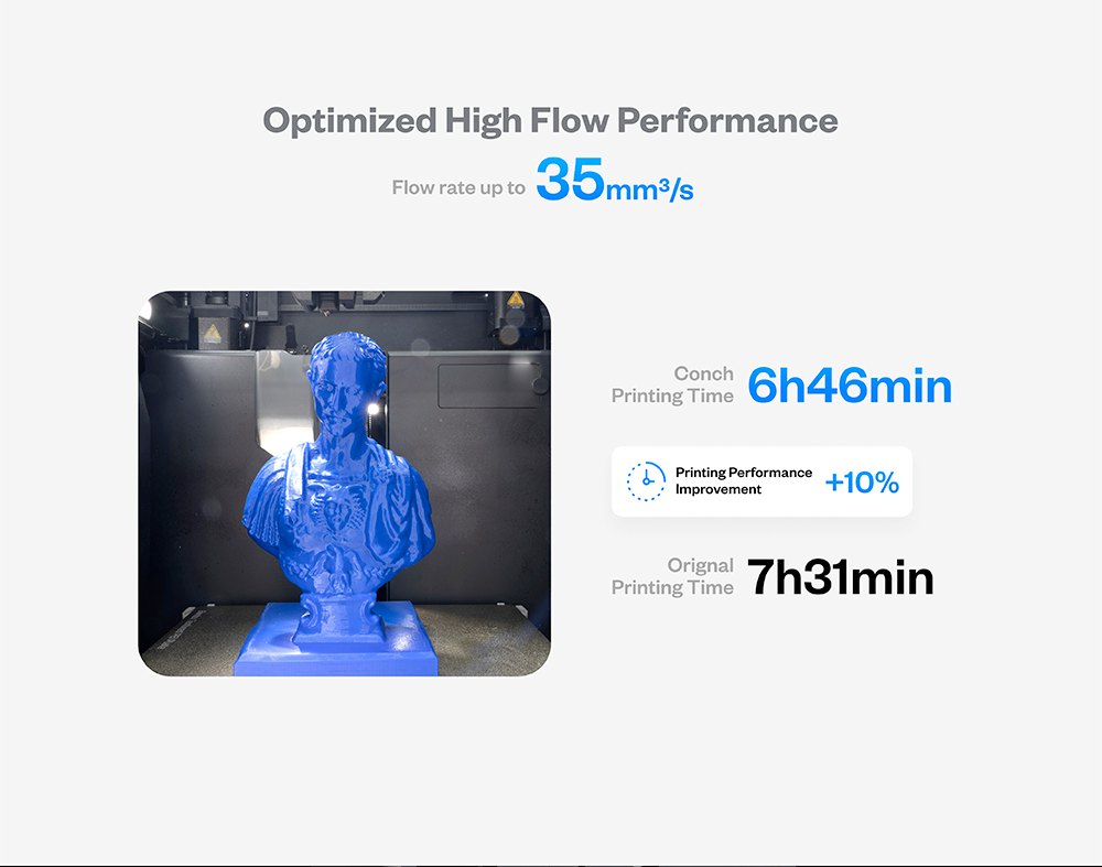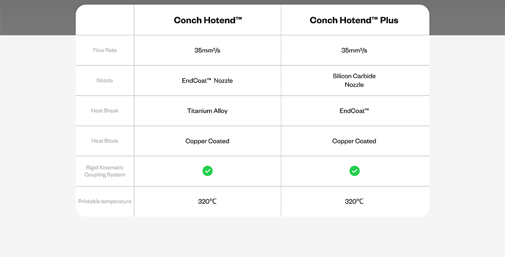 Perfeito para uso profissional e heavy-duty, o Conch Hotend™ Plus garante impressões consistentes e confiáveis mesmo nos projetos mais exigentes!