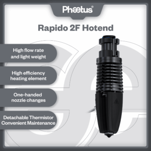 【IMPRESSÃO ULTRA-RÁPIDA】 Experimente o poder da eficiência. O bloco de aquecimento redesenhado apresenta uma zona de aquecimento estendida, permitindo uma taxa volumétrica massiva de até 36 mm^3/s. Leve sua impressora 3D ao limite e reduza seu tempo de impressão com o Rapido 2F.